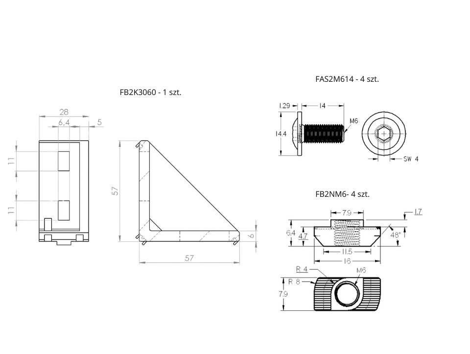 -cztery nakrętki młoteczkowe 8 M6 (FB2NM6).