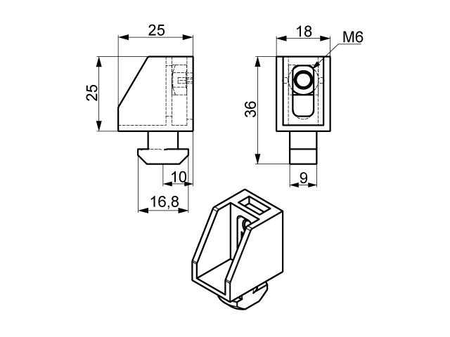 Uniblok 10/10 służy głównie do mocowania osłon wewnątrz konstrukcji z profili aluminiowych. Montaż odbywa się poprzez wprowadzenie wypustu elementu w rowek profilu i obrót o 90°. Element może być montowany ze wszystkimi profilami, których szerokość rowka wynosi 10 mm.