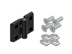 Zawias z tworzywa sztucznego przeznaczony do montażu drzwi i klap z profili serii 45 FB.