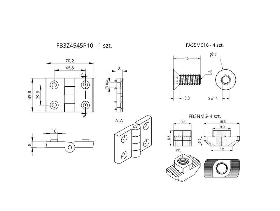 -zawias 45x45 PA 10 FB (FB3Z4545P10)
