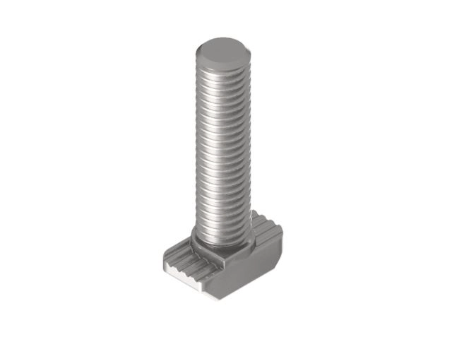 Śruba M5x20 z łbem młoteczkowym służy jako element złączny z wykorzystaniem rowków profilu. Połączenie zachodzi poprzez dokręcenie śruby nakrętką kołnierzową M5.