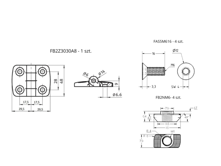 4 szt. x Nakrętka młoteczkowa 8 M6 FB