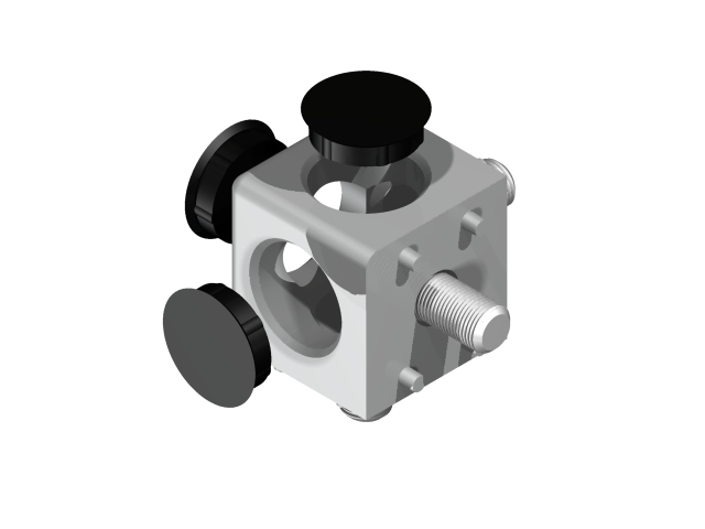 Złącze kostkowe 3D o wymiarach 30x30 mm służy do łączenia trzech profili aluminiowych pod kątem 90°.