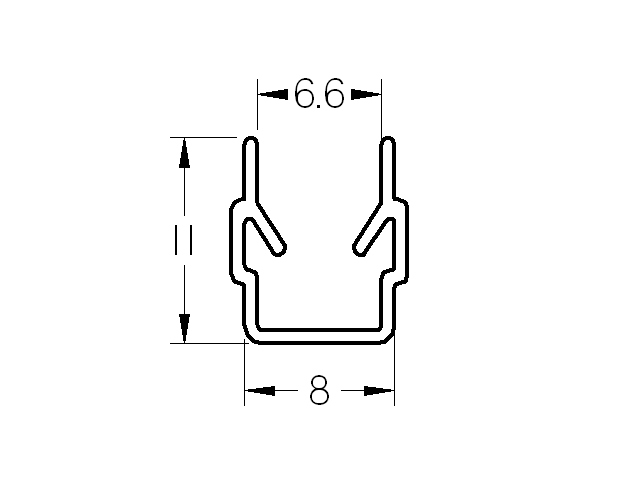 Profil obejmująco- maskujący w kolorze czarnym służy do mocowania elementów płytowych o grubości od 4 do 6 mm w rowkach profili. Może służyć także jako profil maskujący. Znajduje zastosowanie we wszystkich profilach aluminiowych z rowkiem 8 mm.